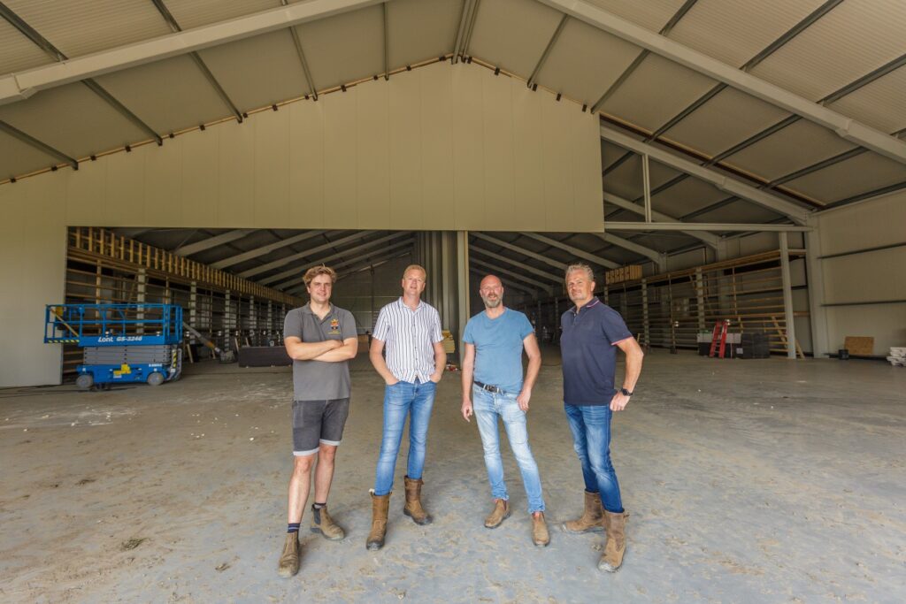 De bouw van de loods startte begin dit jaar en is zo goed als voltooid. Op 14 juli is de oplevering, ruim voor de oogst die in september begint. Projectleider Ritske Tangerman, die verantwoordelijk is voor het hele bouwproces, vertelt dat onder de roostervloer een kelder zit, om tot een zo optimaal mogelijke ventilatie te komen. „Daarnaast is de loods goed geïsoleerd en is hij volledig onderheid.” „De bouw verloopt goed en volgens planning”, voegt Auke toe. „Dat heeft er onder andere mee te maken omdat we bij Lont elk bouwproject vanuit een bouwteamgedachte aanvliegen. De kans dat je dan onverwachte dingen tegenkomt, wordt daarmee verkleind, zo is onze ervaring.”