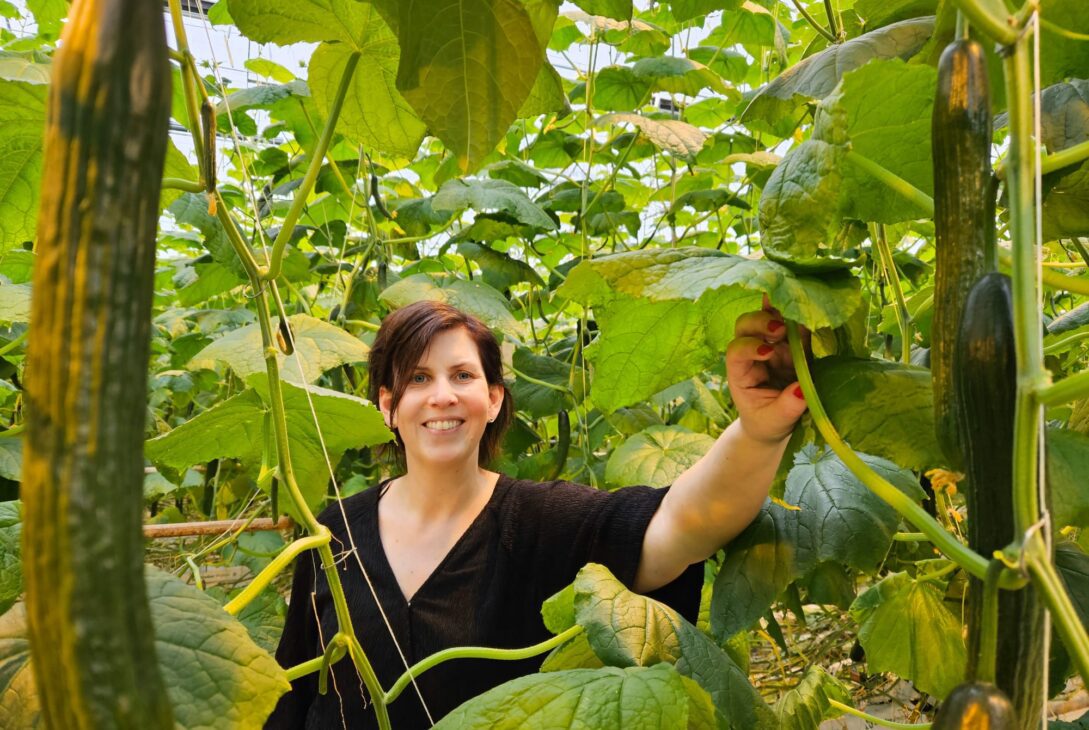 Het komkommerbedrijf in Erica beslaat 18 hectare, 36 voetbalvelden, en produceert zo’n veertig miljoen komkommers per jaar. Samen met haar echtgenoot en broers is Inge de derde generatie telers op het bedrijf. Met een team van 140 medewerkers werken ze aan de komkommer van de toekomst.